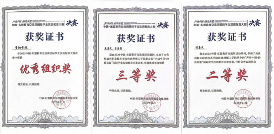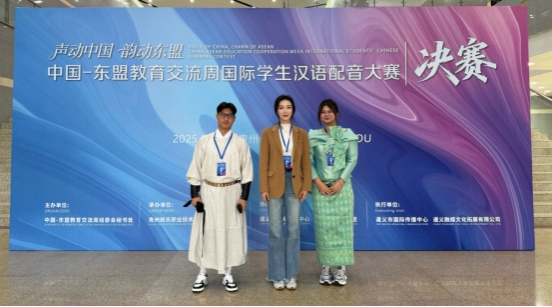 近日,由中国-东盟教育交流周组委会主办,贵州航天职业技术学院和贵州理工学院承办的“声动中国·韵传东盟”国际学生汉语配音大赛在遵义举办,我校留学生成功晋级决赛,并取得佳绩。